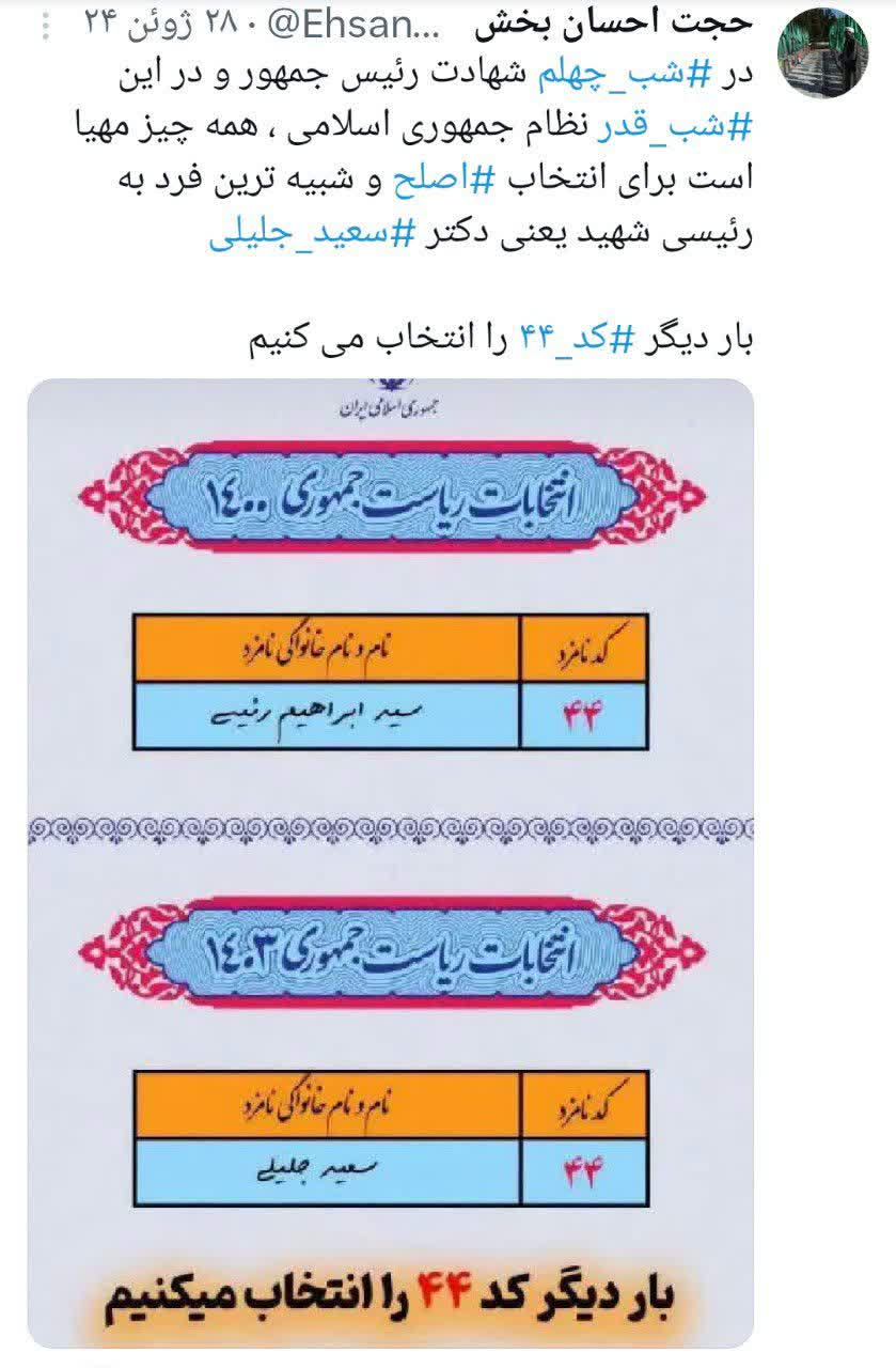 ۳- آقای سعید جلیلی- فرزند محمدحسن- کد نامزد ۴۴