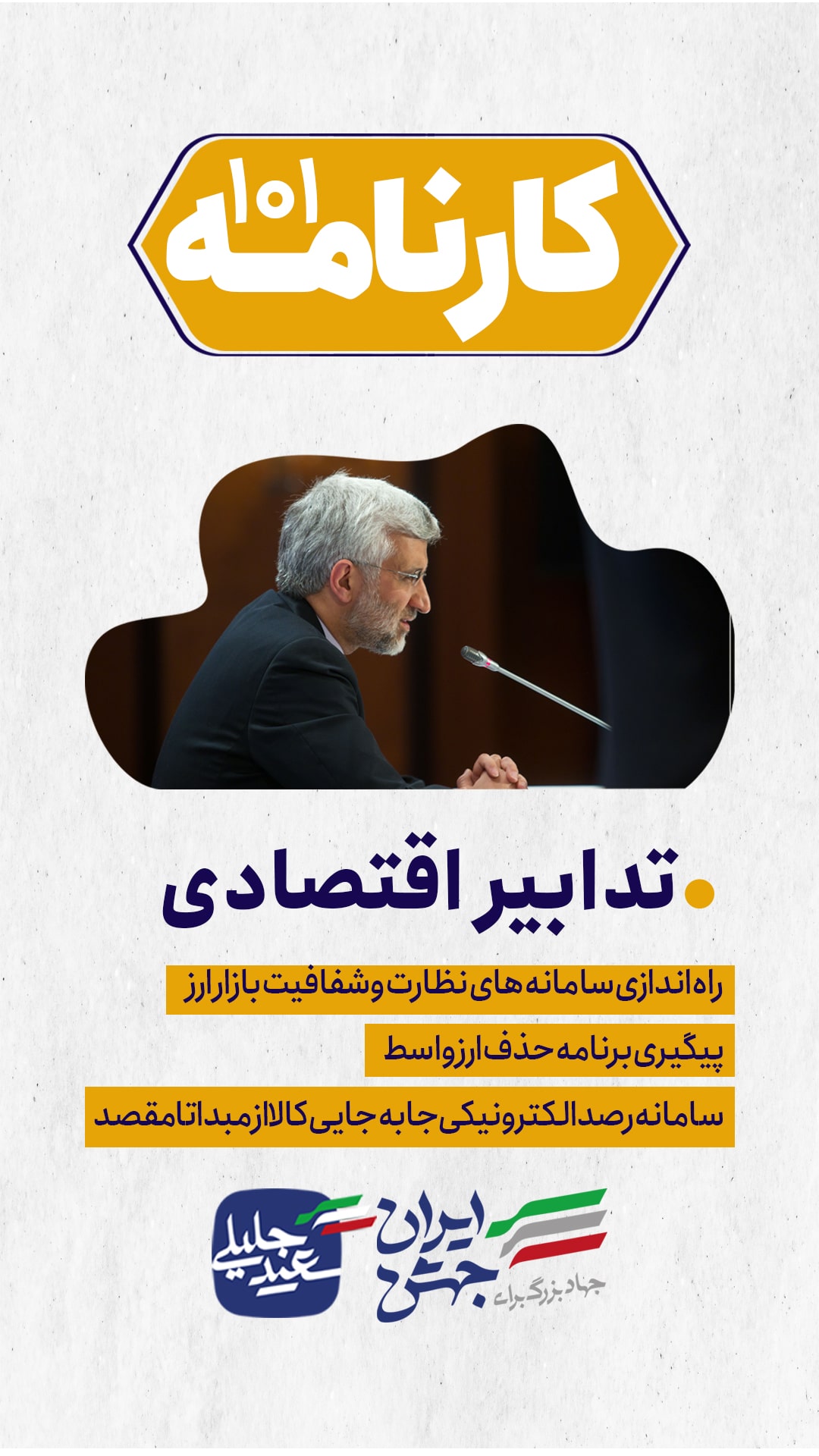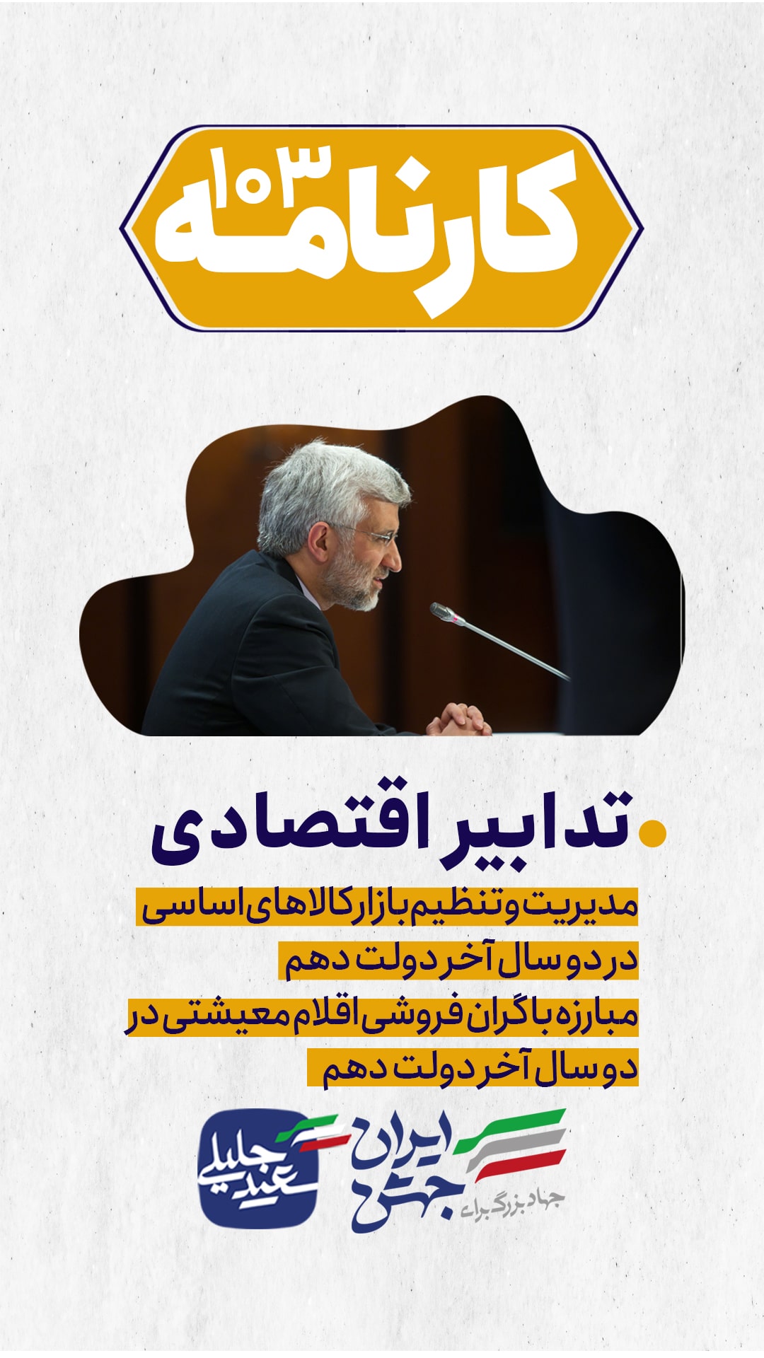 • توضیح و نکته :‌ برخی تولیدات رسانه ای مثل عکس نوشته‌ها یا ویدیوها ممکن است براساس داده‌ها و اطلاعات سال ۱۴۰۰ یا ۱۳۹۹ یا ۱۴۰۳ تولید و نشر شده باشند. شما همواره می‌توانید برای دریافت جدیدترین نظرات و متن‌ها و… سایت رسمی دکتر جلیلی را پیگیری کنید…