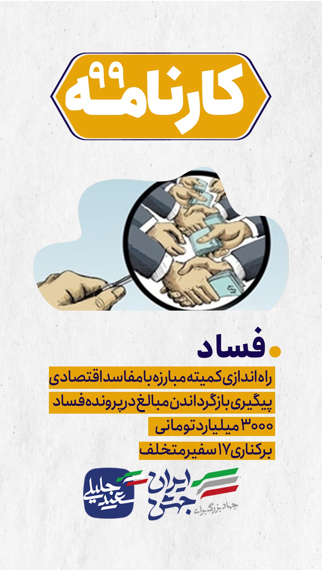 🎯12.مدیریت پرونده اختلاس 3 هزار میلیارد تومانی و بازگرداندن پولها و اموال به یغما رفته به بیت المال