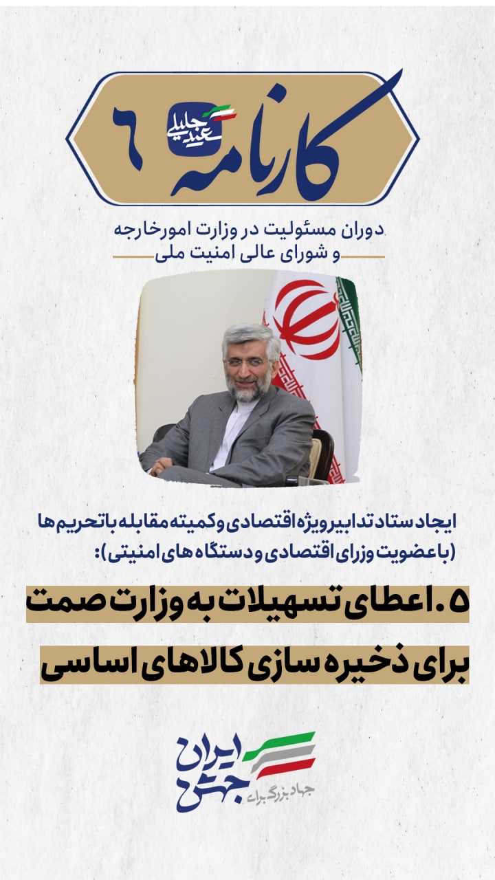 بخشی از کارنامه اجرائی دکتر جلیلی در مدت دبیری شورای عالی امنیت ملّی: