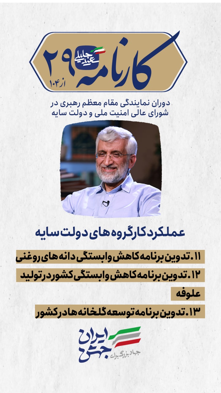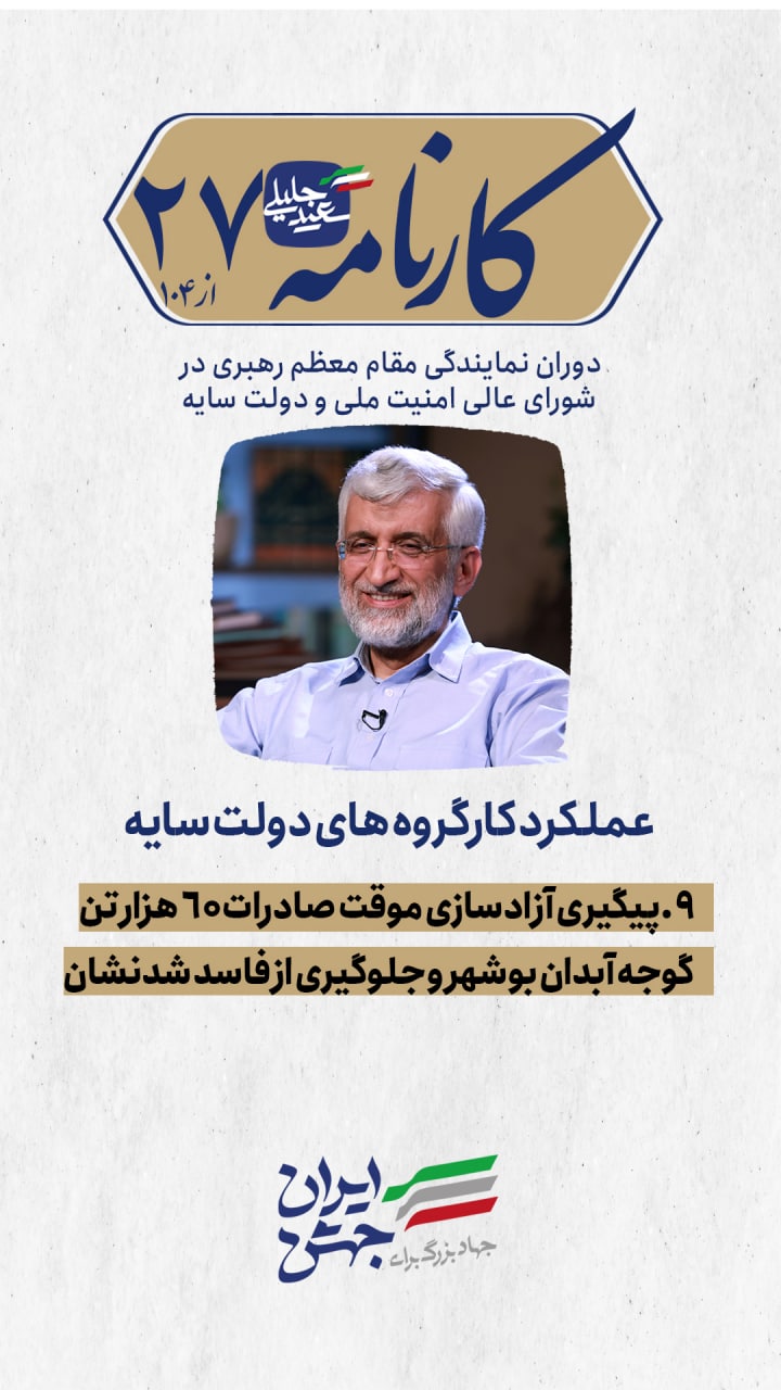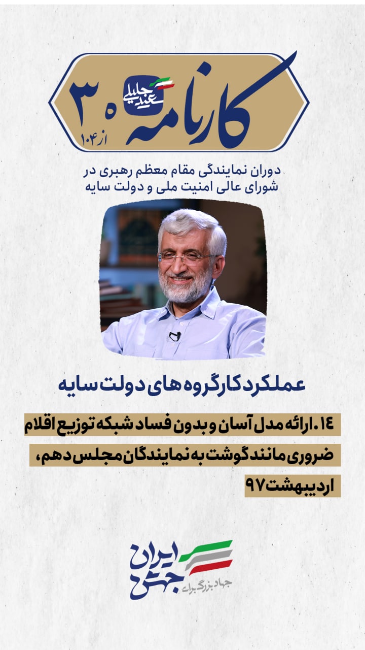 مهمترین موارد کارنامه #دکتر_جلیلی در دوران 8 سال گذشته در دولت سایه: